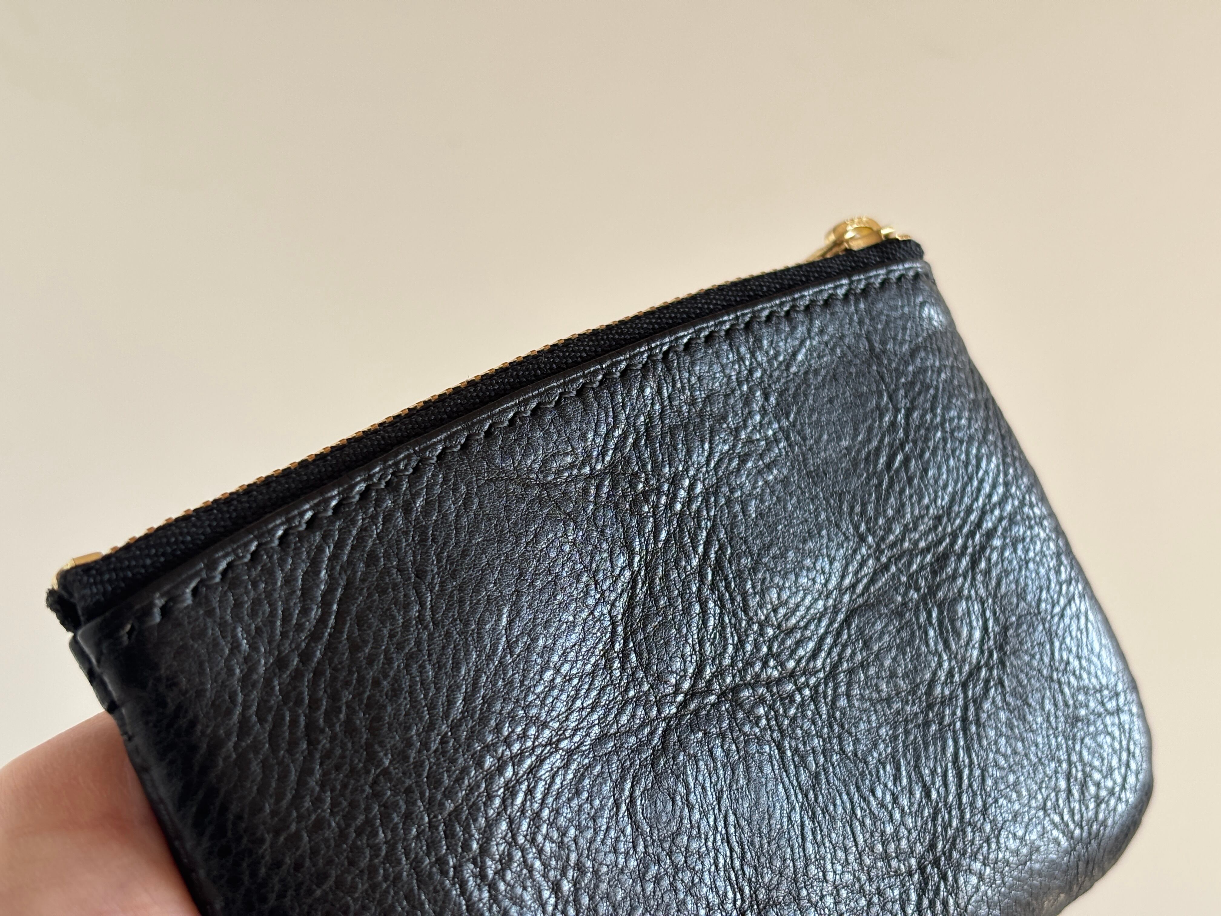 鞄のポケットで膨らみがちな、充電ケーブルやリップクリームなどの小物をスッキリ管理できるよう、パーツ一つ一つの細部に漉き加工を施し、ポーチそのものの厚みを抑えつつ、使い始めから手に馴染むように仕上げました。