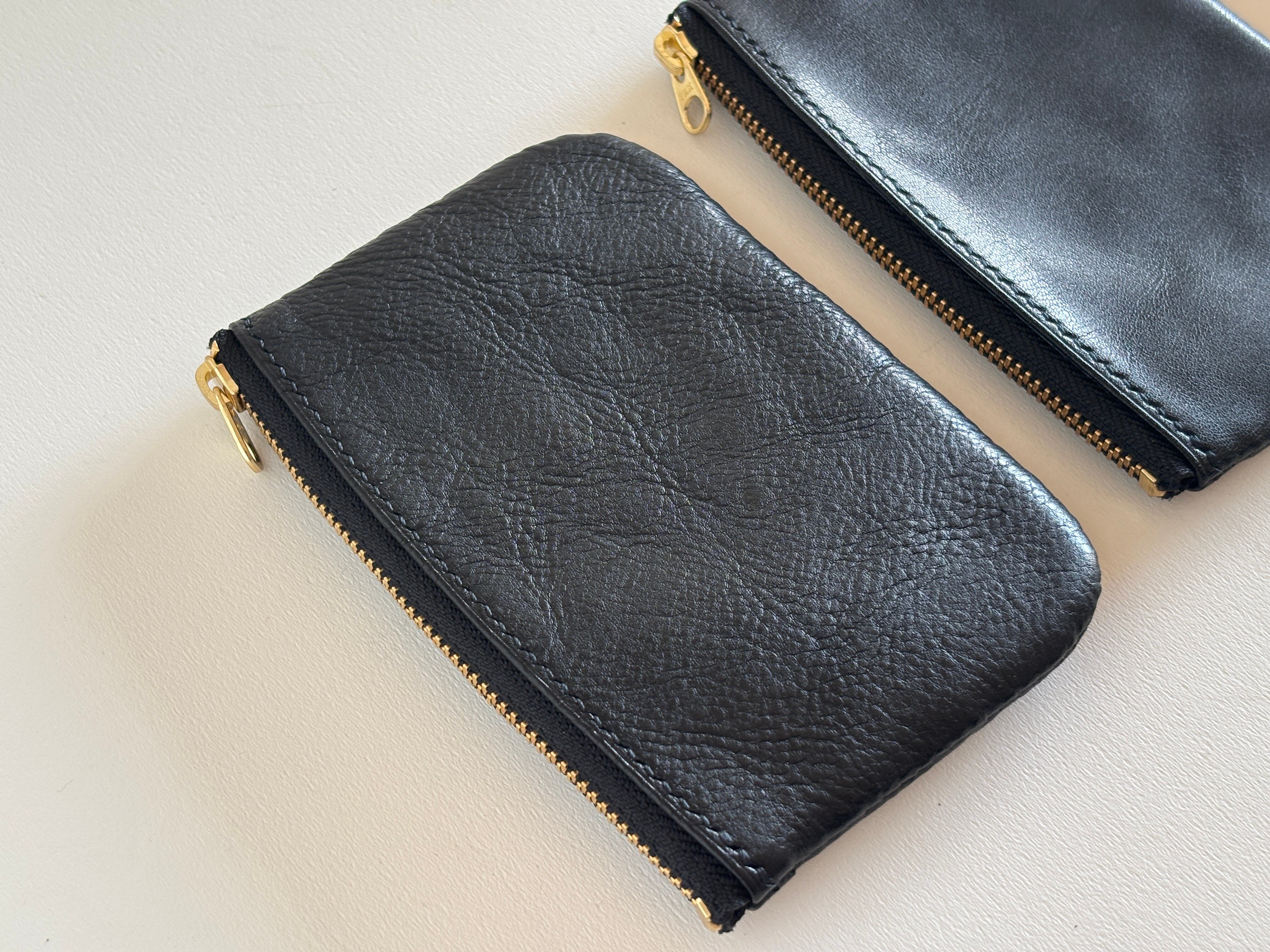 内部には、カードや硬貨を収納できる仕切りポケットを配置。二つ折りの紙幣が干渉しない絶妙なサイズ感に仕上げることで、コンパクトなお財布としての二面性も持たせました。用途やシーンに合わせて、コンパクトな財布としても、スマートな小物入れとしても活躍する、こだわりの詰まった逸品です。