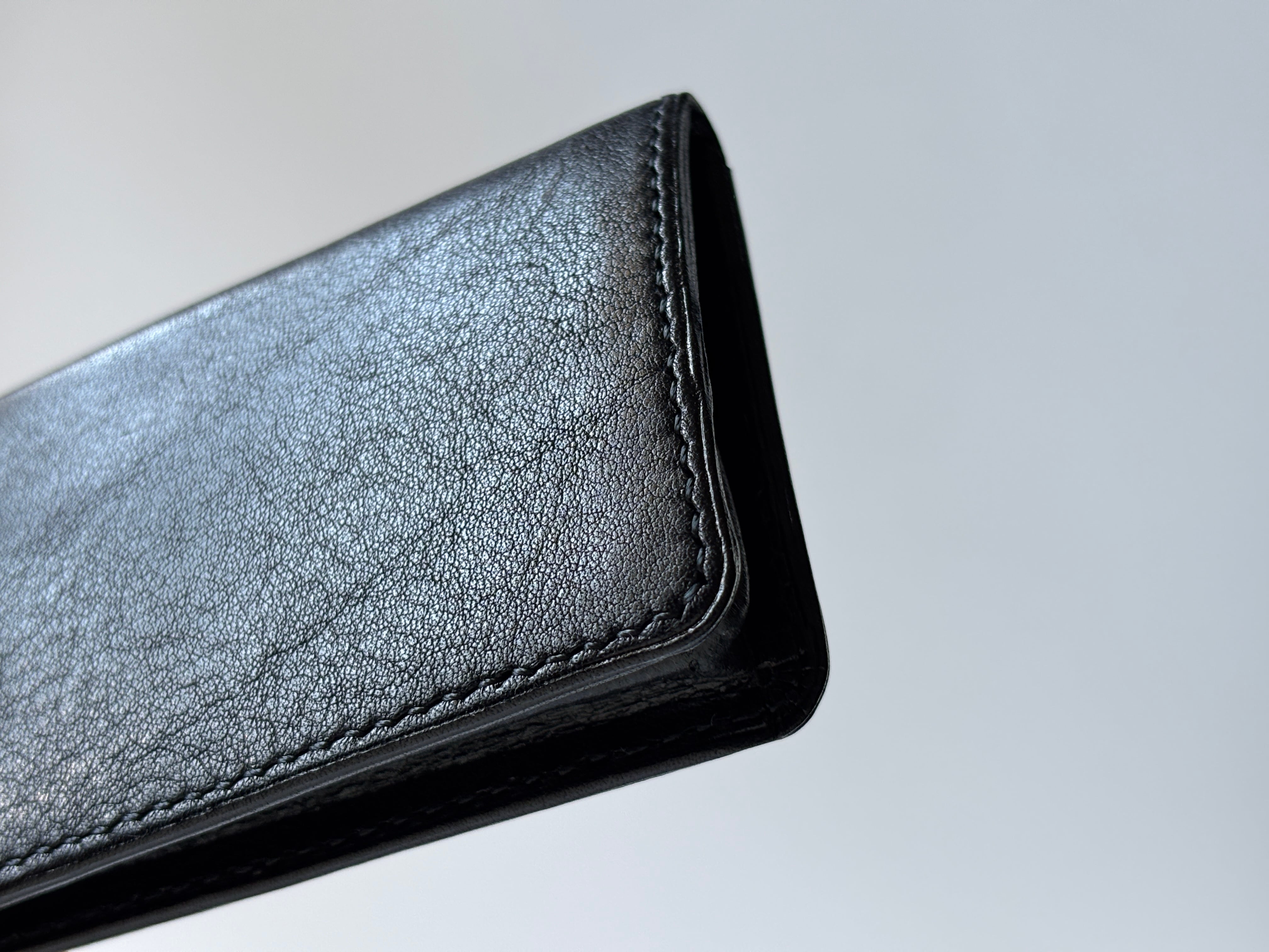 最大の特徴は、一枚の革を緻密に折り重ねて形作る独自のマチ設計。携帯時は極限まで薄く、使用時には大きく箱型に立ち上がる。この「変形」により、実用性とスマートな外観を両立させました。スーツのシルエットを崩すことなく、20枚以上の硬貨を余裕を持って収納できます。
