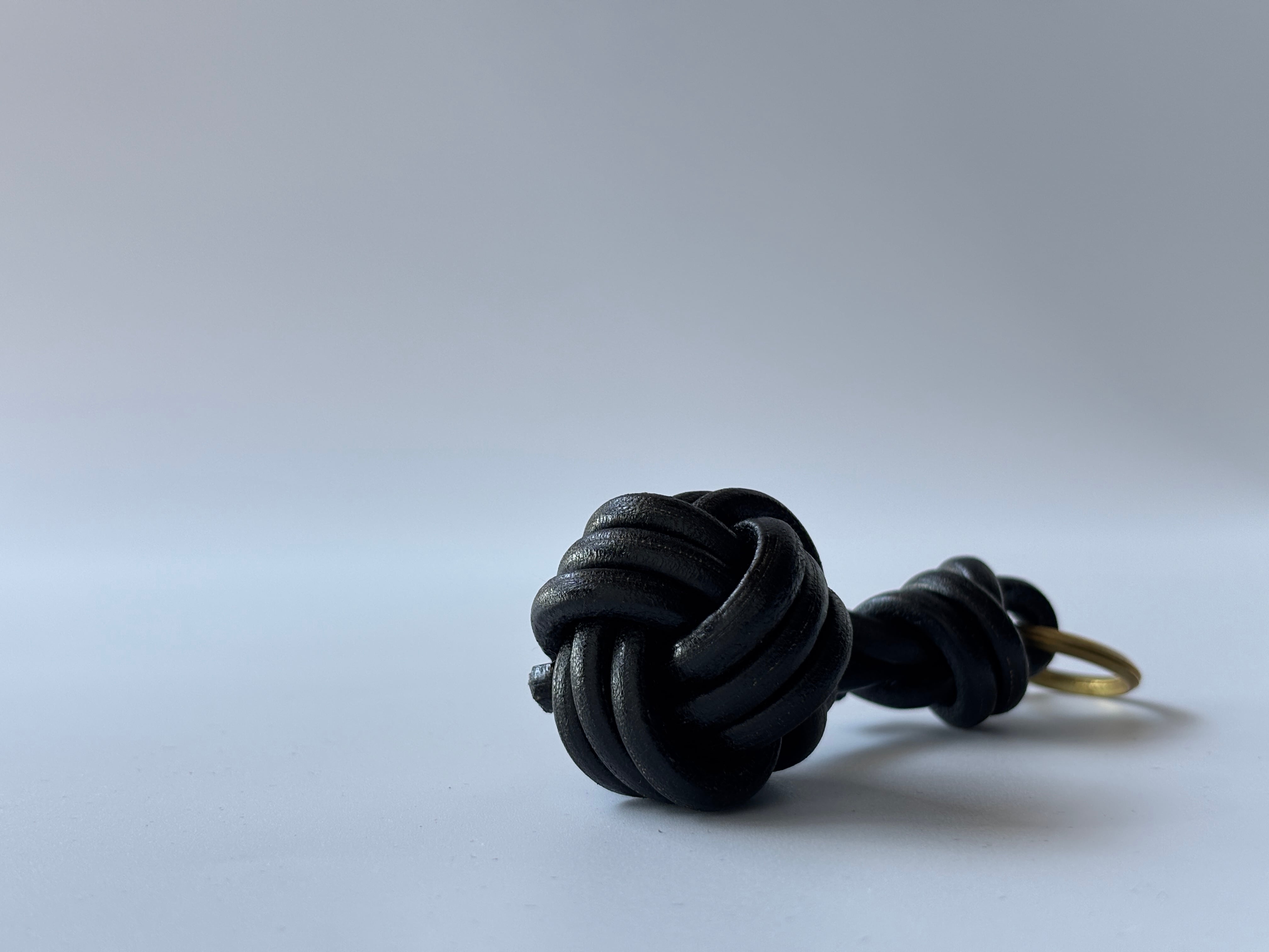 日本の伝統的な「水引」から着想を得た、独自の結び技法を採用しました。一本の革から生まれる複雑な編み込みは、繋ぎ目のない強固な構造と、手のひらに心地よく収まる愛らしいフォルムを両立。日常の何気ない瞬間に、職人の手仕事を添えます。