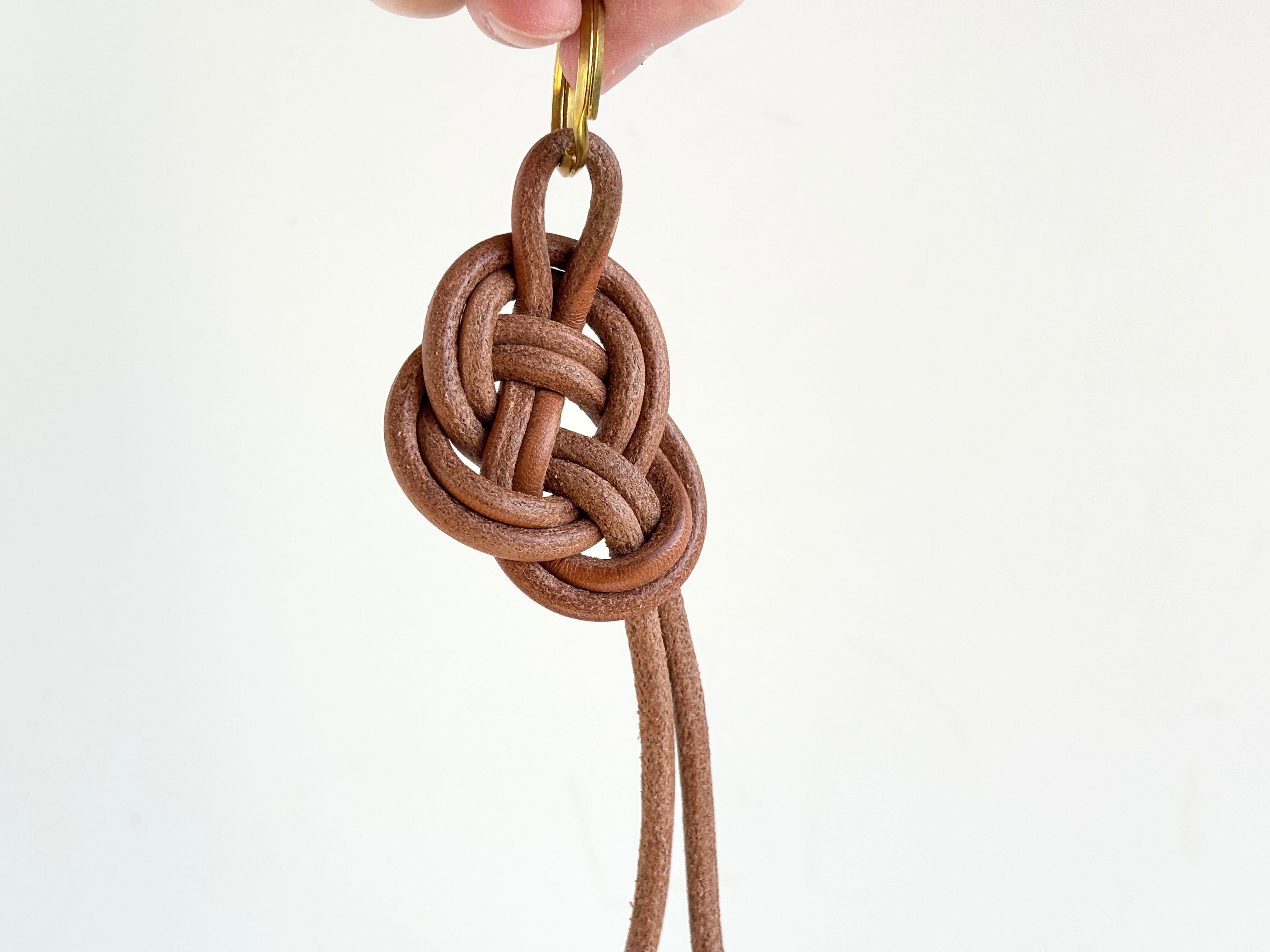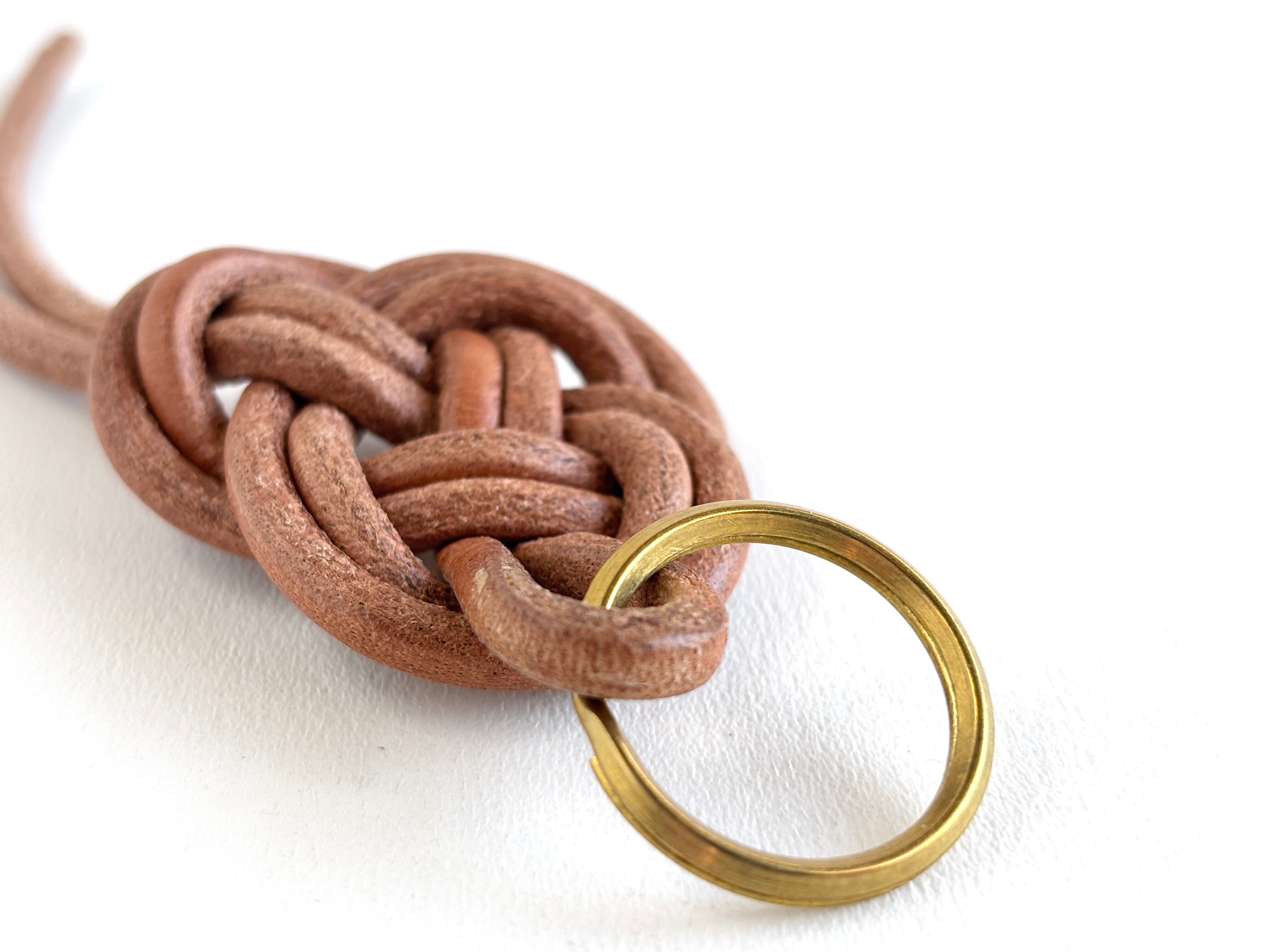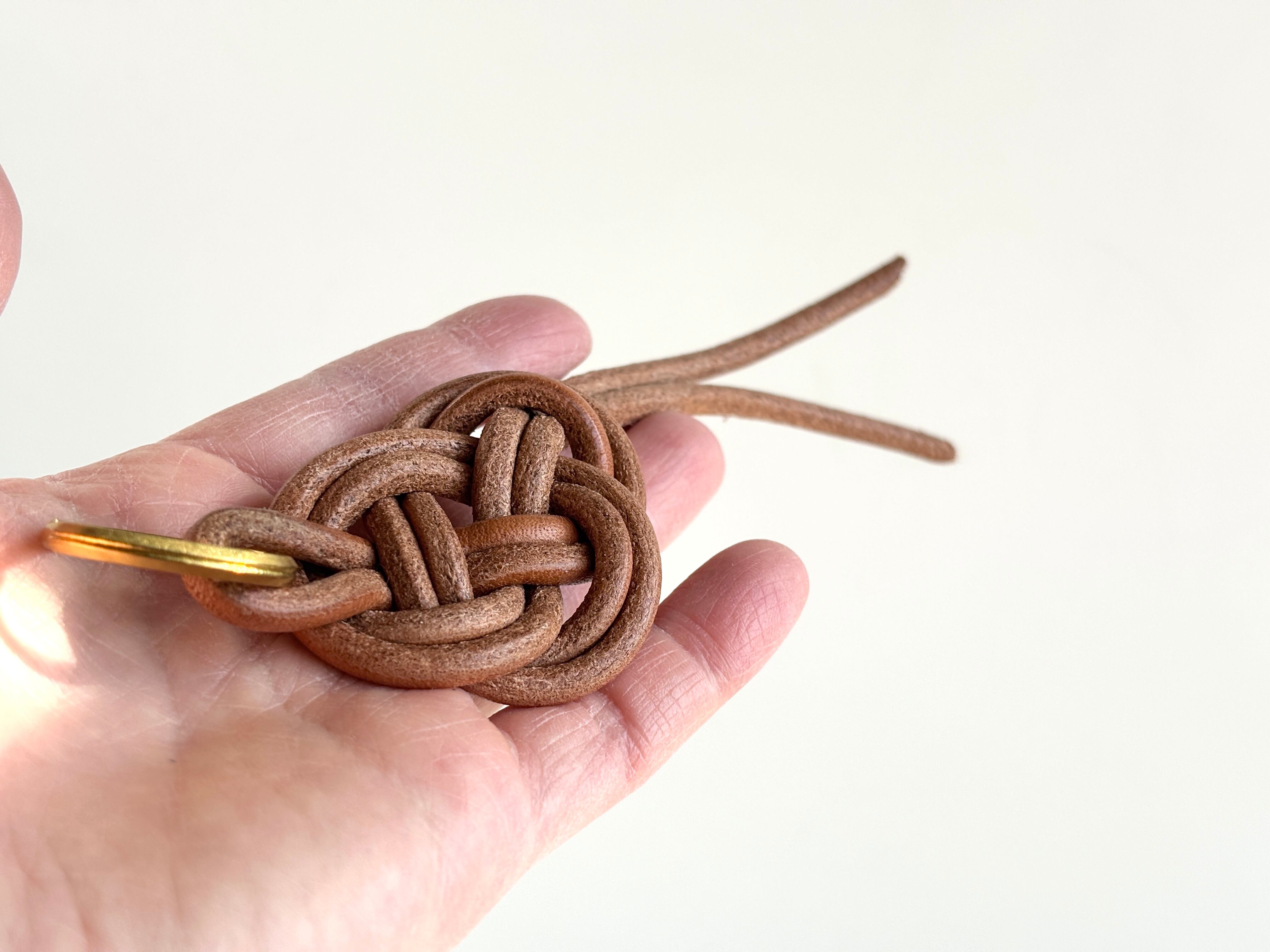 「水引」から着想を得た結び方が特徴で、贅沢な一本革構造になっています。