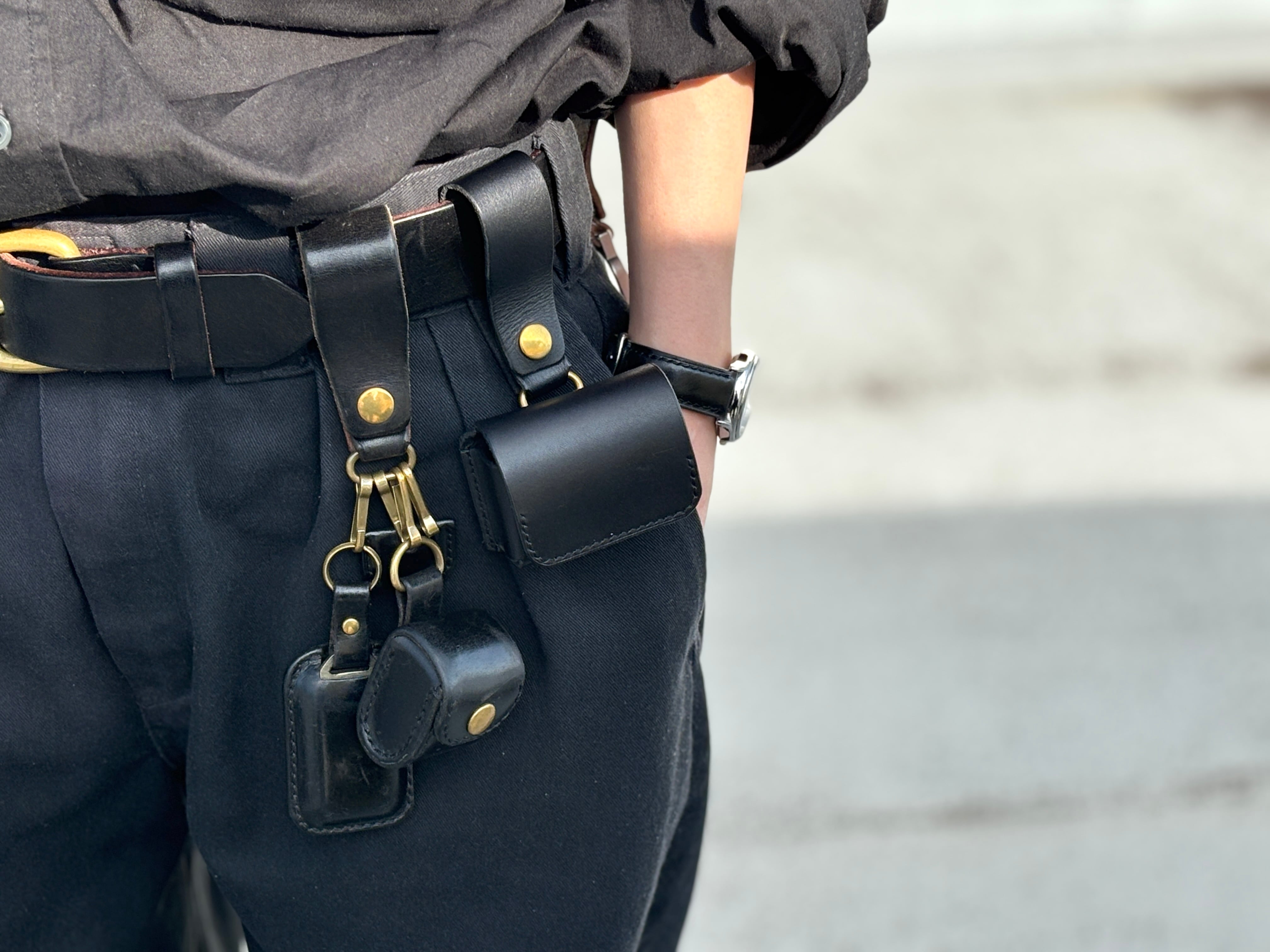 CRAFT39のキーチェーンは、馬具やベルトに用いられているものと同様の非常に丈夫な革を使用しています。そのため、耐久性に優れ引き裂きや摩擦にとても強く、末永くお使い頂けます。また、キーチェーンには珍しい真鍮製のナスカンを3つ搭載しており、鍵をフラットに収納でき、横一列に並んでいるため管理がしやすくなっています。鍵の取り外しが簡単なのに加えて、目を引く佇まいが腰回りを華やかに演出してくれます。
