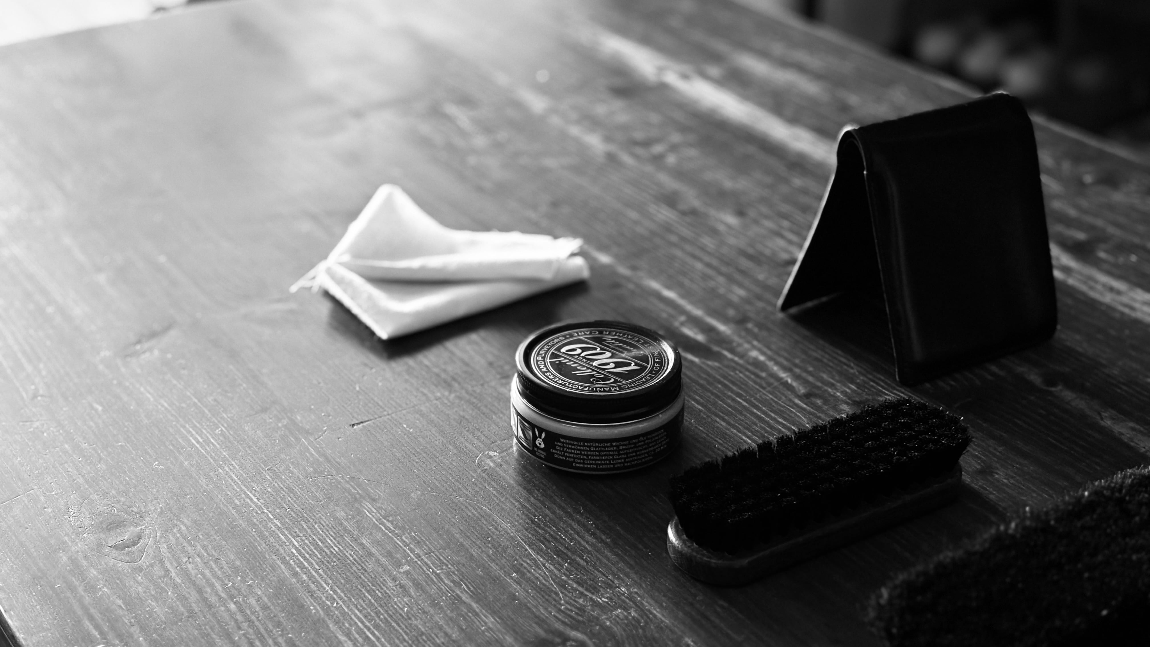 ※+α: ステッチや凹凸に残った余分なクリームは、豚毛ブラシで丁寧に取り除くと、仕上がりの精度が一段と高まります。